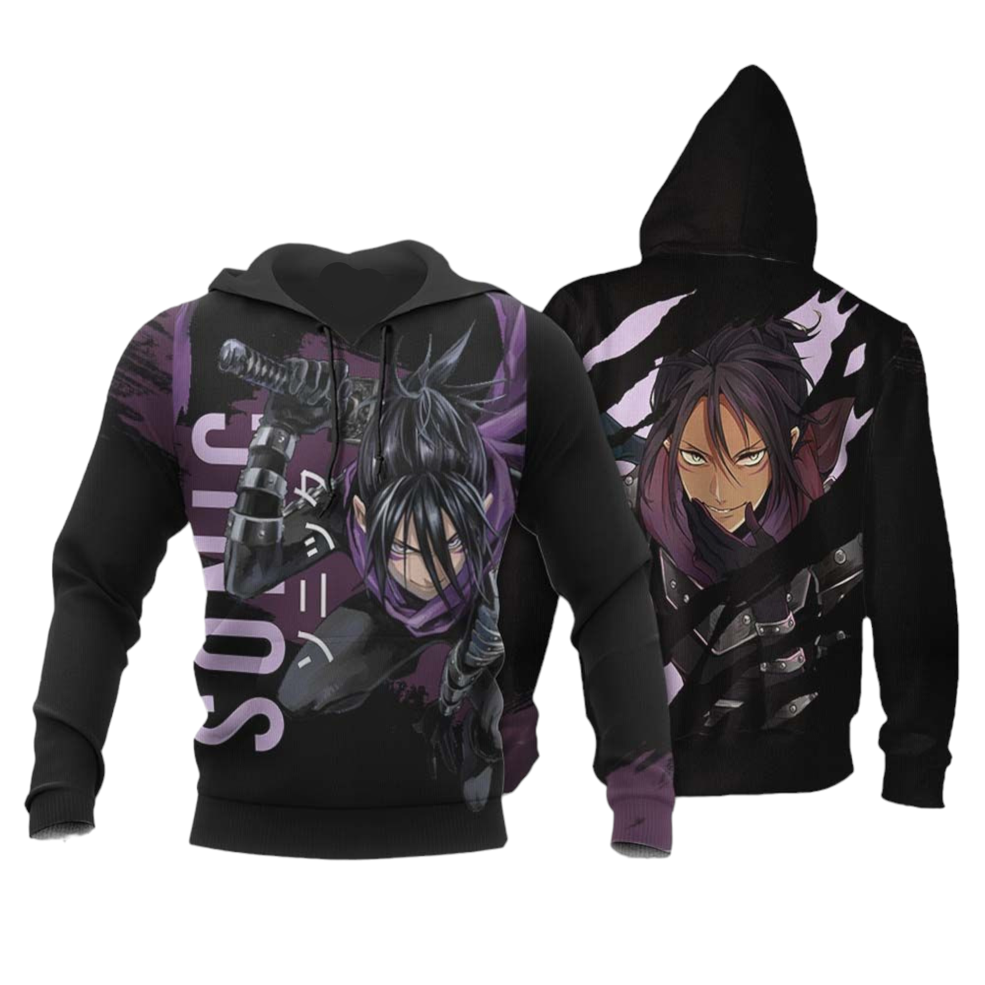 One Punch Man Hoodie Sonic The Assassin Character Hoodie Black Purple Unisex - Cozy Hoodie For Cold Weather