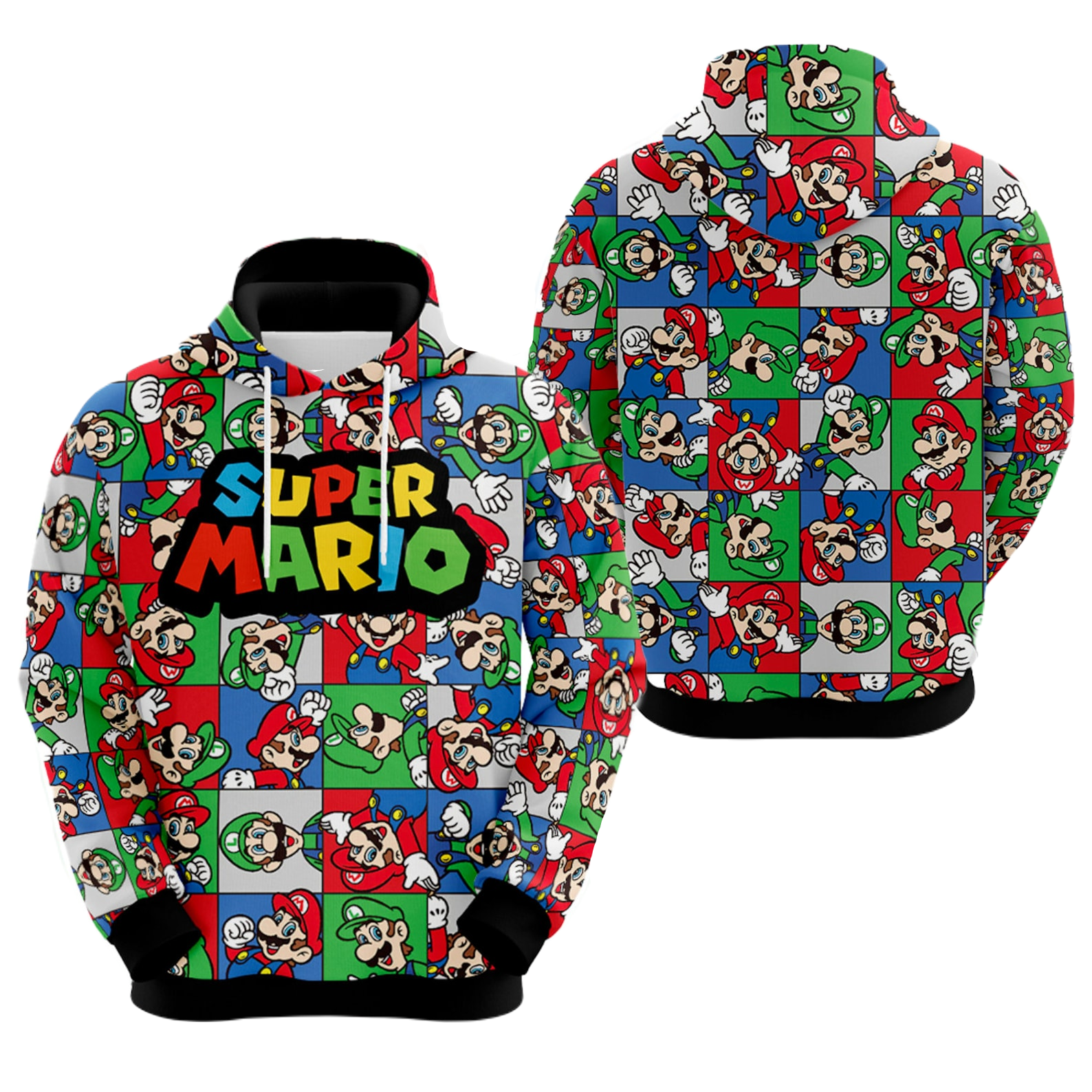 Mario Hoodie Super Mario And Luigi Pattern Hoodie Red Green Unisex